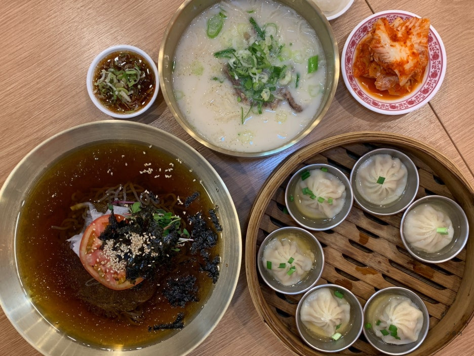 메뉴가 많지 않아 선택이 간편했어요. 저희는 2인 세트를 주문해 한우탕면, 메밀냉소바, 그리고 샤오롱바오를 골랐답니다.